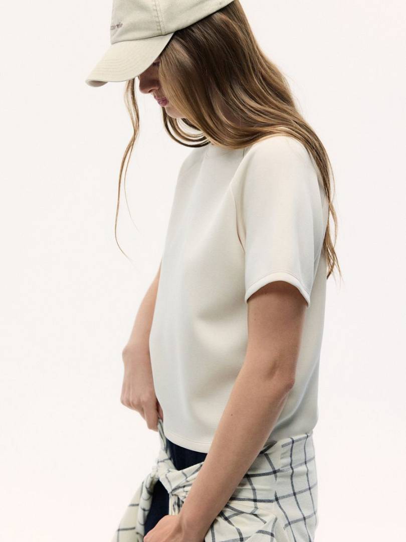 - 3-4 topy i t-shirty w neutralnych kolorach (biały, czarny, ecru)